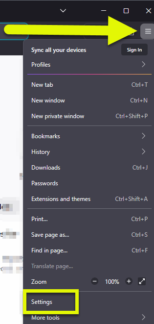 - On the top right, click on the Menu button and select Settings.
