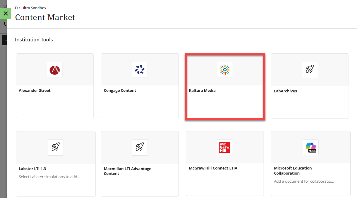 This will bring you into the Content Market. Select Kaltura Media.