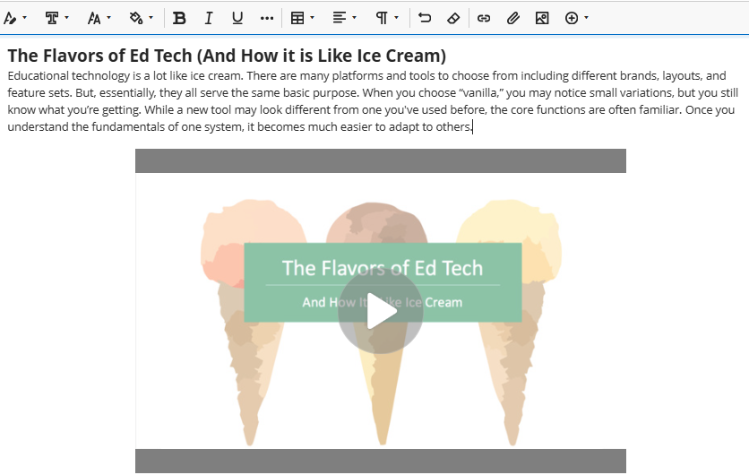 Your media will be embedded into your content. Make any other changes to your content and Save or Submit.
