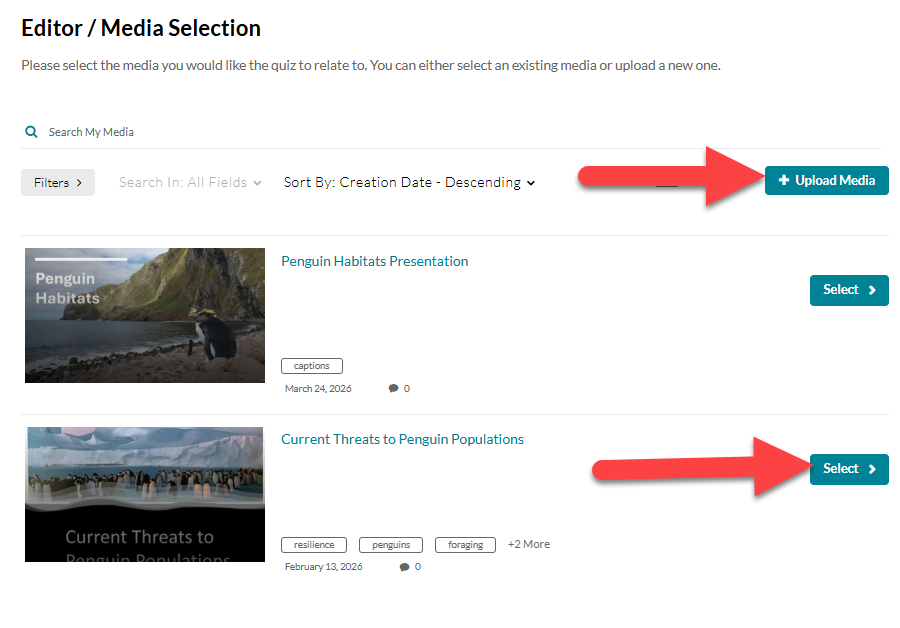 Before you begin, create your Video Quiz in your Kaltura My Media.