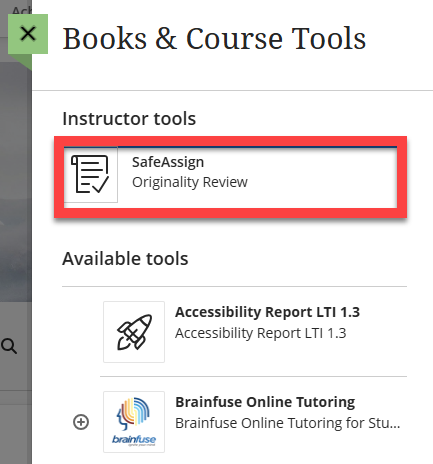 This will open the Books & Course Tools panel. Select SafeAssign.