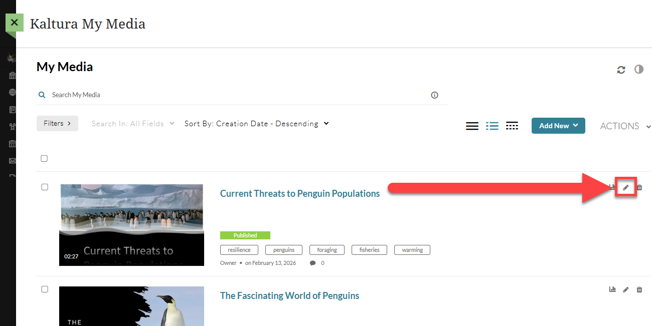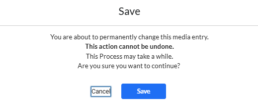Or click Save As to save a copy of your video. You will be prompted to enter a title for your new media entry, which will be saved in your Kaltura My Media.