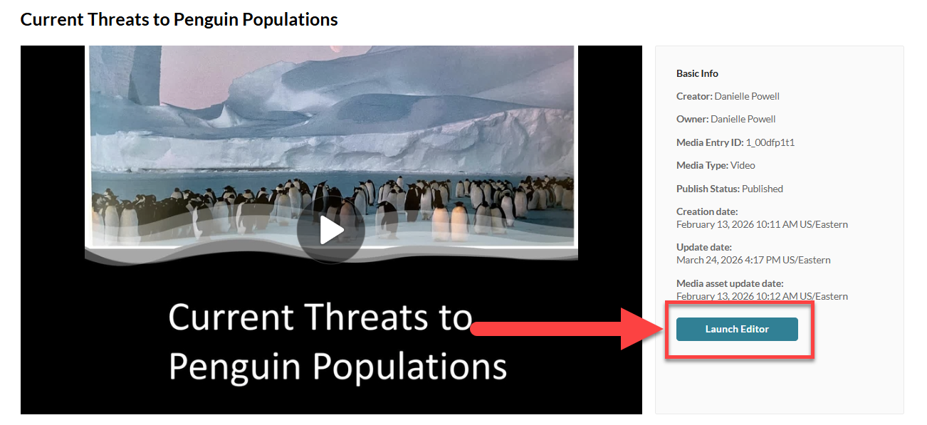 This will bring you to the Edit Media page. Click on Launch Editor to launch the video editor.