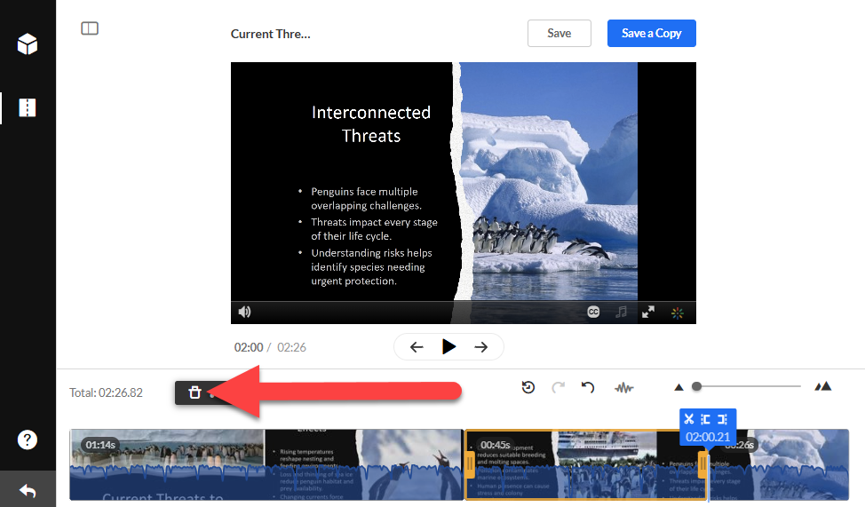 You can use the timeline tools to remove unwanted content from the beginning or end of your video.