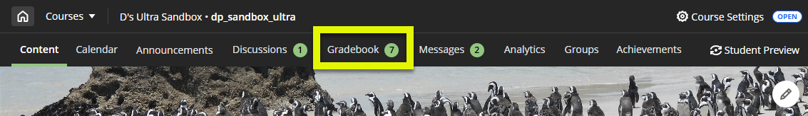 If you are new to the Gradebook, the Gradebook Setup Tutorial will walk you through planning and setting up your Gradebook in Blackboard Ultra—starting with outlining your grading structure, creating all gradable content, and adding any remaining manual grade columns. Once set up, your Gradebook will be organized and ready for you to navigate, review, and grade student work efficiently.