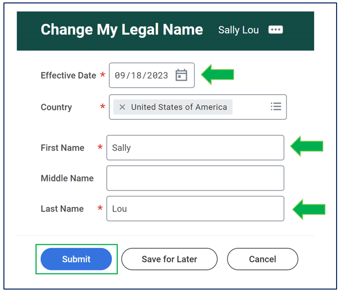 You will be prompted to fill in the details of your legal name change. When completing the task, be sure to fill out.