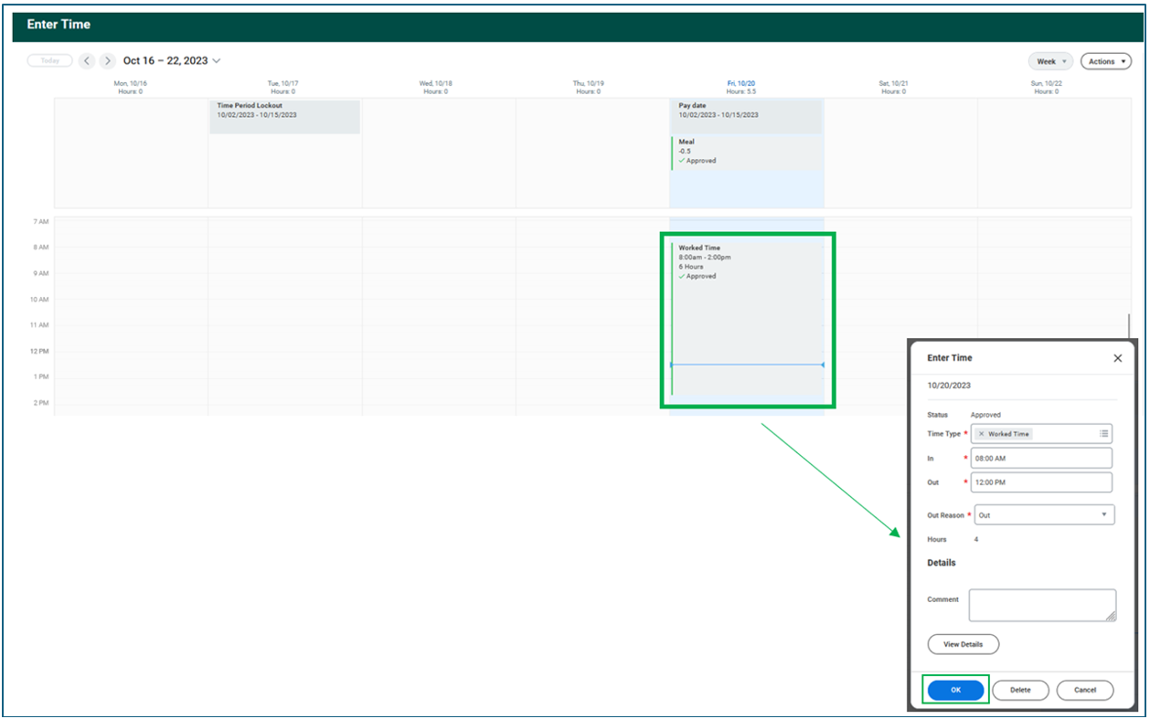 On the pop-up screen, confirm the Worker and Date. Click OK.