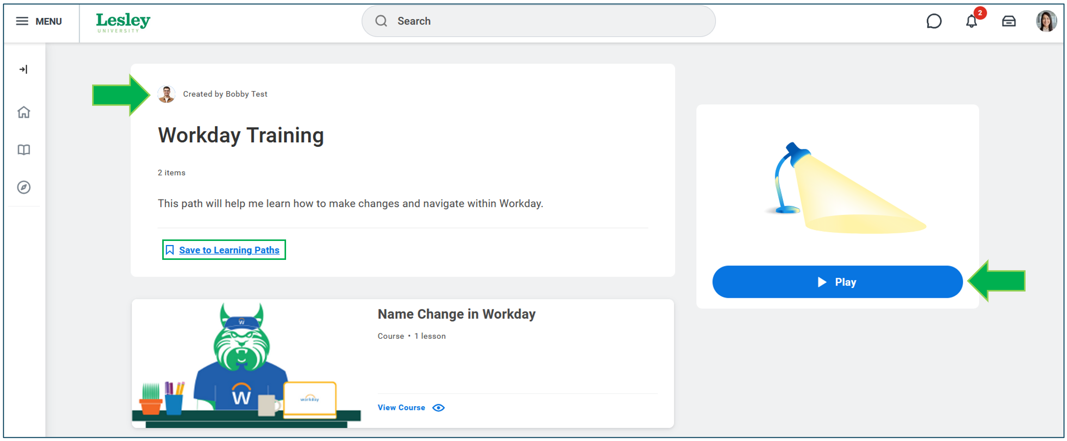 Your employee will need to paste the link in their browser. Once it loads, the path will displayed. They can start the learning journey and even save the path by clicking Save to Learning Paths. You will see the path was created by you the manager as the created by will displayed on the top left.